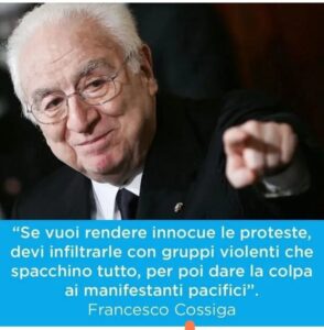 In entrambi i casi, pochi minuti di devastazione hanno cancellato ore di partecipazione pacifica. In entrambi i casi, i media generalisti e di sistema hanno scelto di aprire i loro servizi (strumentali) con le immagini di vetrine distrutte, e non con le voci dei manifestanti. In entrambi i casi, la legittimità di una protesta di massa è stata quindi messa in discussione da un’azione minoritaria. A ventiquattro anni da Genova, lo schema si ripete: gruppi in nero che si muovono come corpi estranei dentro cortei più ampi, capovolgendo il significato politico della piazza. A perdere non è solo la causa immediata allora la critica alla globalizzazione, oggi la solidarietà con la Palestina – ma la possibilità stessa di una protesta di massa non criminalizzata. Il paradosso è che, mentre i movimenti provano a mantenere il terreno della nonviolenza, è proprio l’immagine del “nero” a tornare ciclicamente come arma di delegittimazione. Forse il sistema occulto delle armi, delle guerre e della finanza oligarchica che si nutre di queste, tende ad autoconservarsi, infiltrando agenti guastatori nei movimenti per la pace e per la giustizia? Questa tecnica ben nota ai regimi moderni era finanche stata ammessa molti anni fa dall’allora Ministro degli Interni Francesco Cossiga…